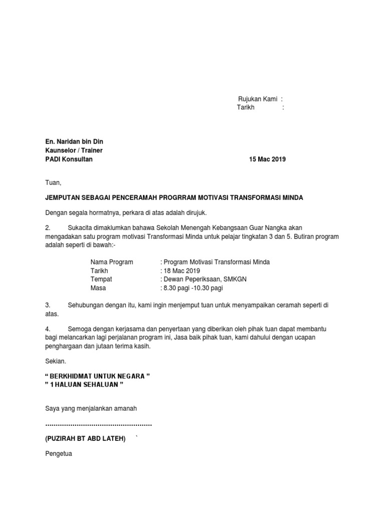 Contoh Surat Jemputan Penceramah Motivasi Pdf